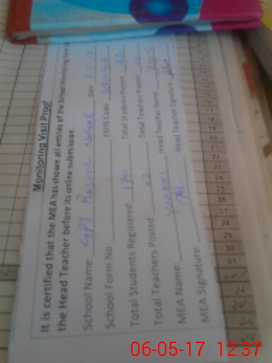 | Attendance Register | Head Teacher | MEA with School | Visit Proof |