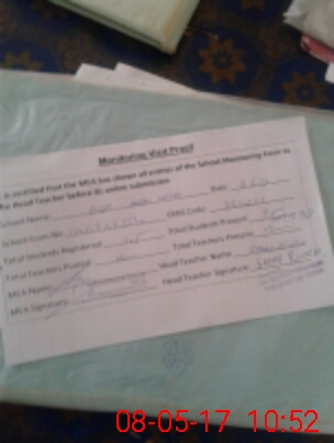 | Attendance Register | Head Teacher | MEA with School | Visit Proof |