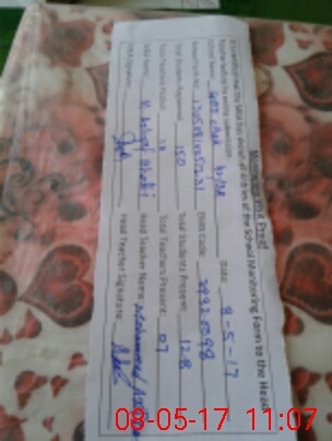 | Total no. of Classrooms: 6 No. of Classrooms Used for Teaching: 6 No. of Classrooms Storing Old Furniture, FTBs, etc: 0Comments if Any: Muhammad Ibraheem Mali seriously ill brain cancer He applied for meadical leave25 March 2017 |