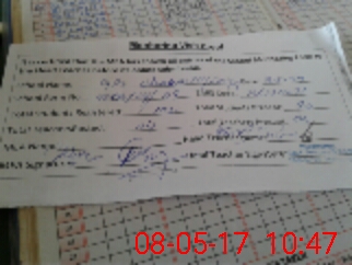 | Monitoring Date: 08-05-2017 | Start Time: 08-05-2017 10:32 AM | End Time: 08-05-2017 10:50 AM | Name of MEA: SA**** AK**** | |