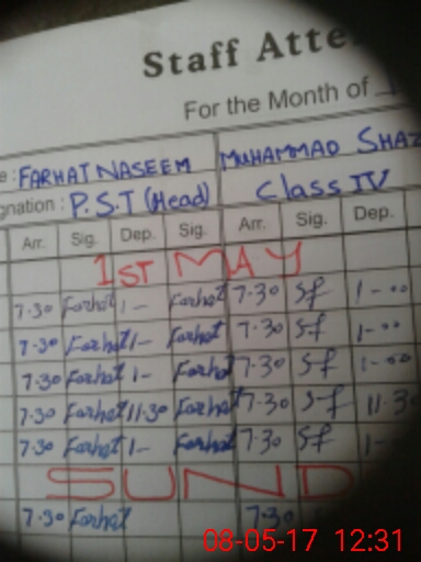 | Name: Su**** Fa**** Designation: (School Headmaster's/Headmistress's) PST Phone/Cell Number: 03**** |