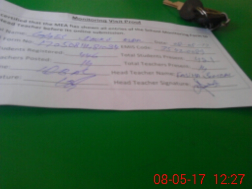 | Attendance Register | Head Teacher | MEA with School | Visit Proof |