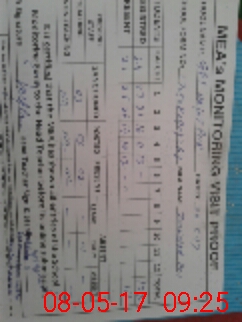 | Monitoring Date: 08-05-2017 | Start Time: 08-05-2017 08:14 AM | End Time: 08-05-2017 09:29 AM | Name of MEA: Z-**** Zu**** Al**** (C**** ex**** 31**** | |