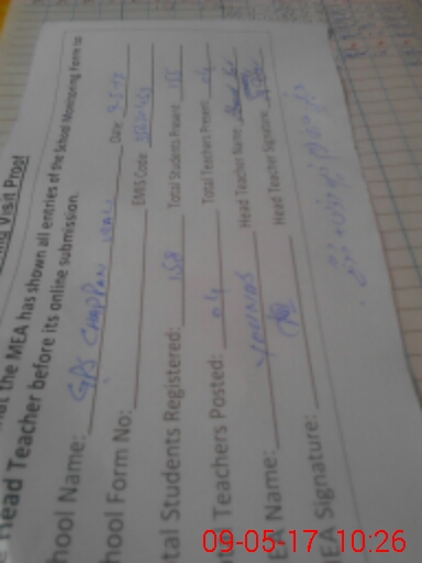 | Attendance Register | Head Teacher | MEA with School | Visit Proof |