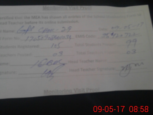 | EMIS Code: 35420722 | Name of School: GPS CHAK 29 MURIDKE | |||