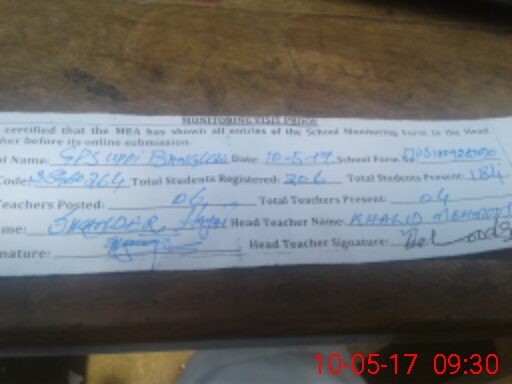 | EMIS Code: 38460264 | Name of School: GPS UPPI BANGLOW | |||