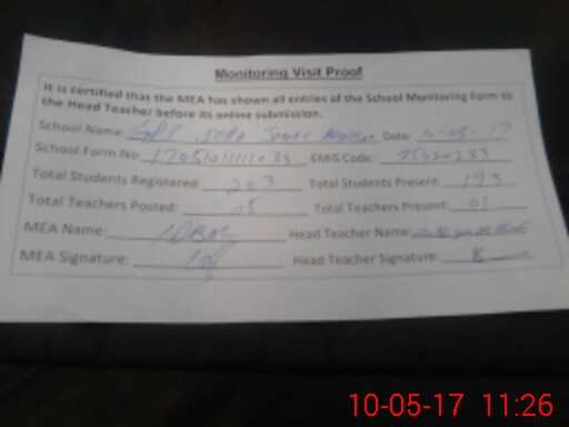 | Certified that this School was Inspected by the Undersigned MEA/DMO Today and the Information Stated Above is as Per Record. | |||||