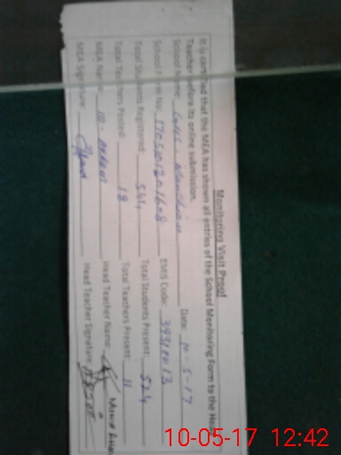 | Certified that this School was Inspected by the Undersigned MEA/DMO Today and the Information Stated Above is as Per Record. | |||||