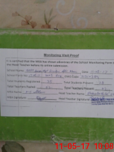 | Certified that this School was Inspected by the Undersigned MEA/DMO Today and the Information Stated Above is as Per Record. | |||||