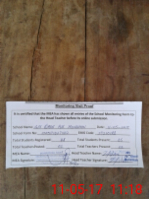 | Attendance Register | Head Teacher | MEA with School | Visit Proof |