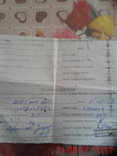 | Attendance Register | Head Teacher | MEA with School | Visit Proof |