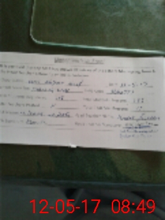 | Monitoring Date: 12-05-2017 | Start Time: 12-05-2017 08:26 AM | End Time: 12-05-2017 09:01 AM | Name of MEA: Mu**** Iz**** UlHa**** | |