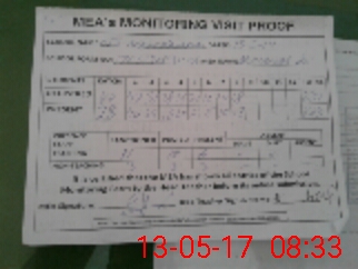 | Monitoring Date: 13-05-2017 | Start Time: 13-05-2017 07:55 AM | End Time: 13-05-2017 08:34 AM | Name of MEA: Mu**** Al**** ex**** | |