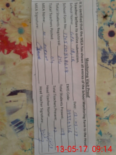 | Certified that this School was Inspected by the Undersigned MEA/DMO Today and the Information Stated Above is as Per Record. | |||||