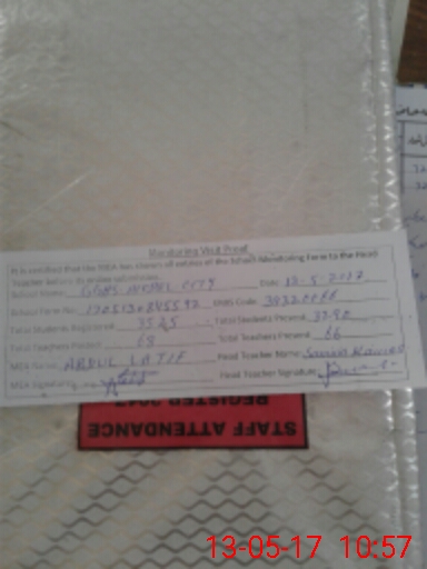 | Certified that this School was Inspected by the Undersigned MEA/DMO Today and the Information Stated Above is as Per Record. | |||||