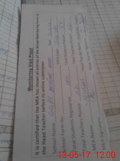 | Attendance Register | Head Teacher | MEA with School | Visit Proof |