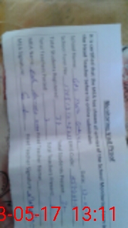 | Name: M.AF**** Designation: (School Headmaster's/Headmistress's) PTC/JV Phone/Cell Number: 03**** |