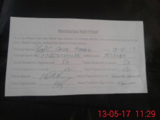 | Certified that this School was Inspected by the Undersigned MEA/DMO Today and the Information Stated Above is as Per Record. | |||||