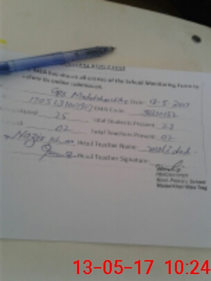 | Attendance Register | Head Teacher | MEA with School | Visit Proof |