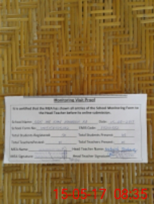 | Attendance Register | Head Teacher | MEA with School | Visit Proof |