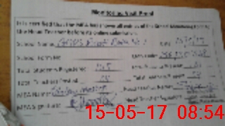 | Monitoring Date: 15-05-2017 | Start Time: 15-05-2017 08:32 AM | End Time: 15-05-2017 08:54 AM | Name of MEA: GH**** MU**** | |