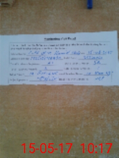 | Monitoring Date: 15-05-2017 | Start Time: 15-05-2017 09:50 AM | End Time: 15-05-2017 10:22 AM | Name of MEA: MU**** RA**** (R**** | |