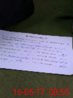 | Monitoring Date: 16-05-2017 | Start Time: 16-05-2017 08:21 AM | End Time: 16-05-2017 08:55 AM | Name of MEA: Mu**** Af**** -R.**** | |