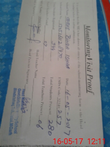 | Attendance Register | Head Teacher | MEA with School | Visit Proof |