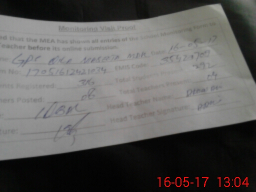 | Attendance Register | Head Teacher | MEA with School | Visit Proof |