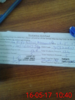 | Attendance Register | Head Teacher | MEA with School | Visit Proof |