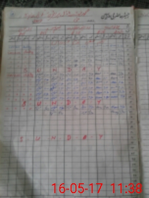 | CNIC | Full Name | Designation | R/C | Absence During Last Calender Month |