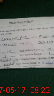 | Monitoring Date: 17-05-2017 | Start Time: 17-05-2017 07:55 AM | End Time: 17-05-2017 08:23 AM | Name of MEA: Al**** Hu**** BN**** | |