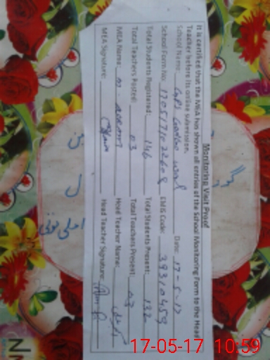 | Name: Ir**** Al**** Designation: (School Headmaster's/Headmistress's) PTC/JV Phone/Cell Number: 03**** |