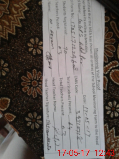 | Certified that this School was Inspected by the Undersigned MEA/DMO Today and the Information Stated Above is as Per Record. | |||||