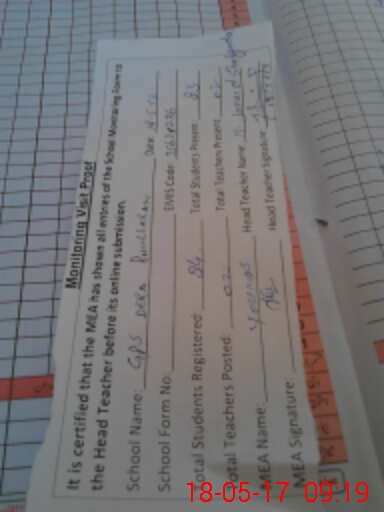 | Attendance Register | Head Teacher | MEA with School | Visit Proof |