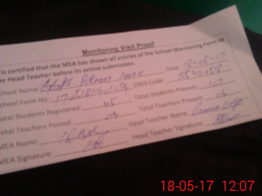 | Attendance Register | Head Teacher | MEA with School | Visit Proof |
