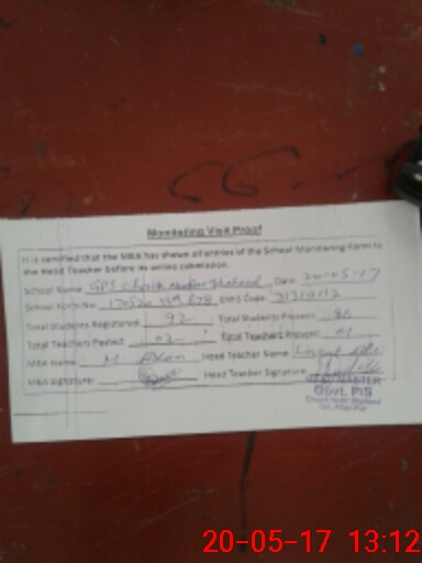 | Attendance Register | Head Teacher | MEA with School | Visit Proof |