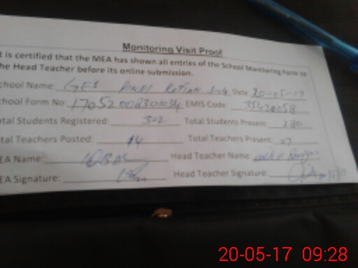 | Attendance Register | Head Teacher | MEA with School | Visit Proof |