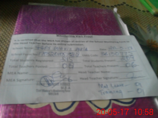 | Attendance Register | Head Teacher | MEA with School | Visit Proof |