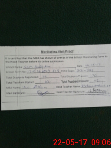 | Monitoring Date: 22-05-2017 | Start Time: 22-05-2017 08:30 AM | End Time: 22-05-2017 09:10 AM | Name of MEA: Mu**** As**** -KP**** | |