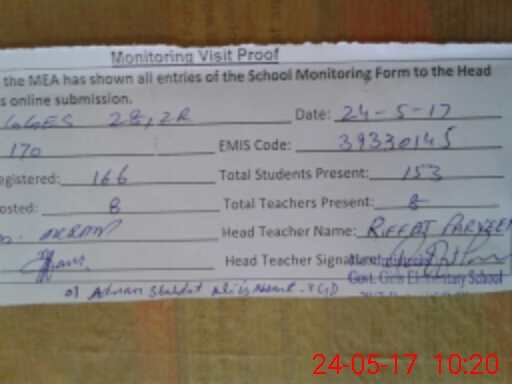 | Attendance Register | Head Teacher | MEA with School | Visit Proof |