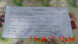 | Monitoring Date: 15-08-2017 | Start Time: 15-08-2017 10:05 AM | End Time: 15-08-2017 10:36 AM | Name of MEA: Za**** Iq**** BN**** | |
