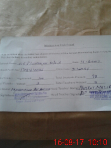| Name: NU**** NA**** Designation: (School Headmaster's/Headmistress's) EST Phone/Cell Number: 03**** |