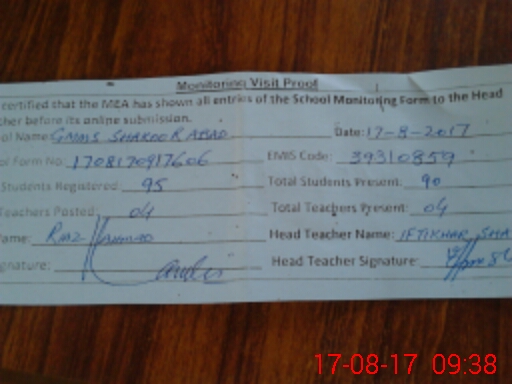 | EMIS Code: 39310859 | Name of School: GPS SHAKOOR ABAD BASTI | |||