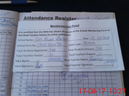 | Attendance Register | Head Teacher | MEA with School | Visit Proof |