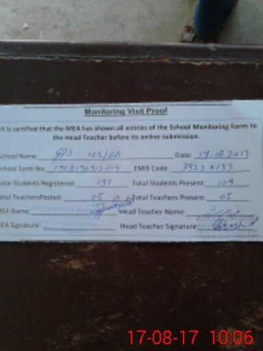 | Certified that this School was Inspected by the Undersigned MEA/DMO Today and the Information Stated Above is as Per Record. | |||||