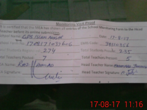| EMIS Code: 39310356 | Name of School: GPS ISLAM NAGAR | |||