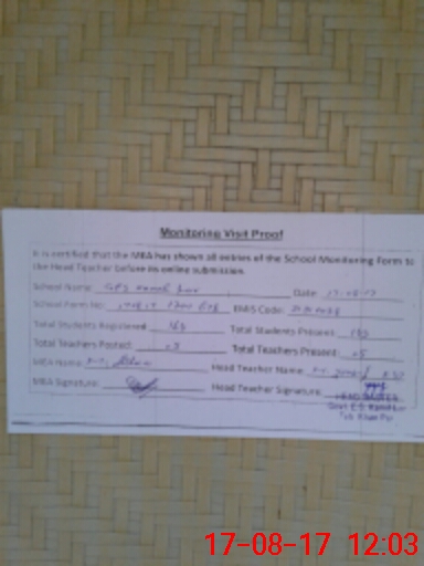| Attendance Register | Head Teacher | MEA with School | Visit Proof |