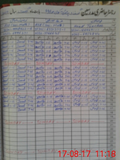 | CNIC | Full Name | Designation | R/C | Absence During Last Calender Month |