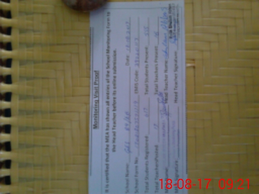| Attendance Register | Head Teacher | MEA with School | Visit Proof |